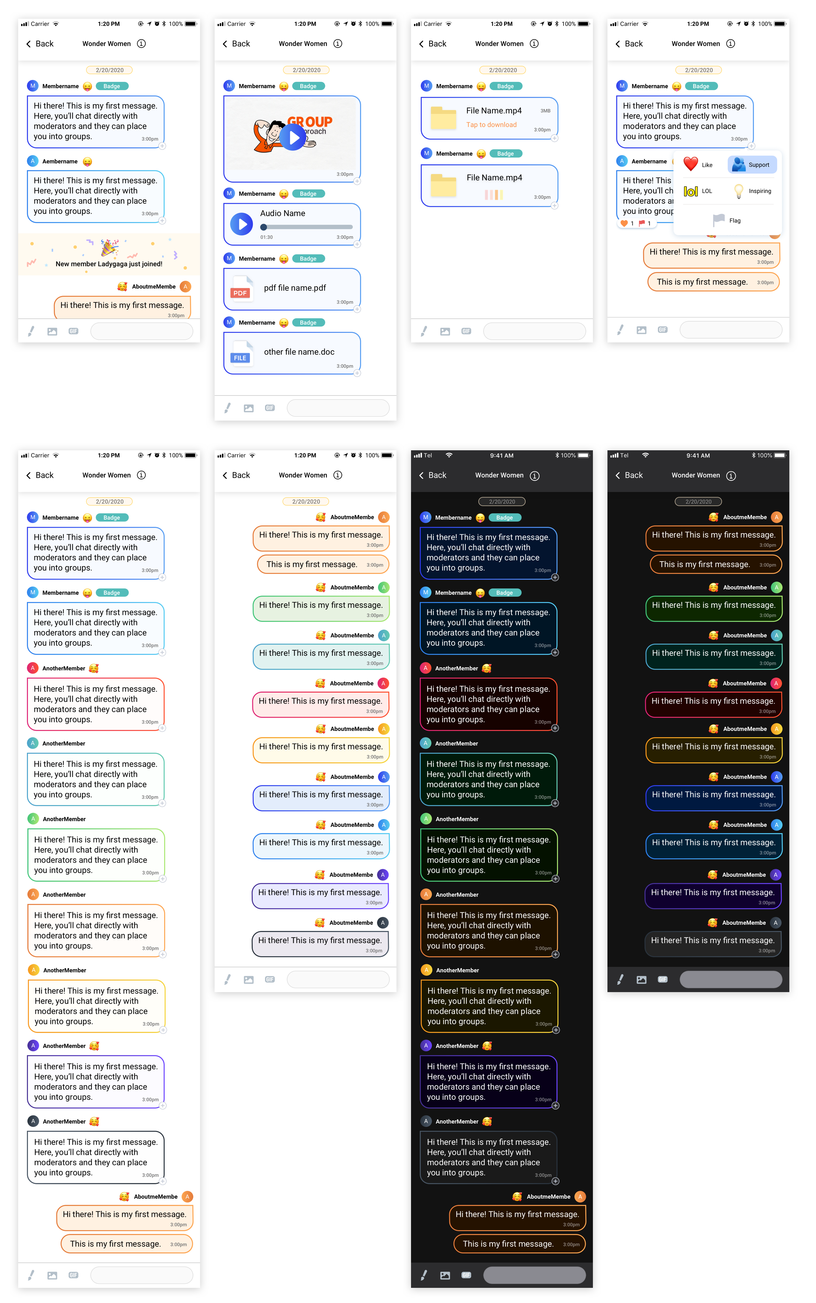 Based on V1, I create final designs for Chat Page. Here are some sample screens: