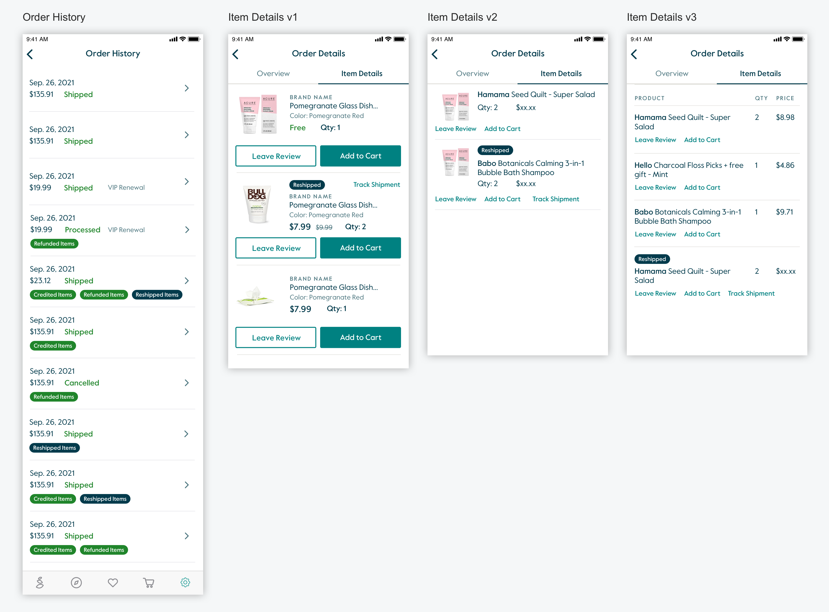 I led the mobile app redesign of Order History feature which supported the public company readiness. It displayed refunds, reshipments, and applied store credits that affect a customer’s order.